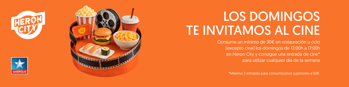 - Una vez obtenidos los cupones de KINÉPOLIS, estos se podrán canjear en el cine por una entrada de cine para cualquier día y película. Los cupones de cine se podrán canjear hasta el 31 de mayo de 2026 en la taquilla de Kinepolis de Heron City Valencia o en la web de kinepolis.es. Los suplementos 3D, sala 4DX, IMAX o eventos extraordinarios no están incluidos.